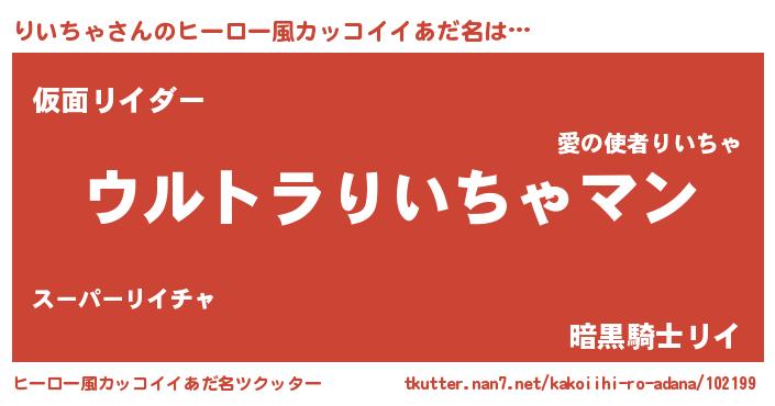 | 男性向けラノベタイトル風あだ名 | 『うちの娘の為ならば、俺はもしかしたらりいちゃも倒せるかもしれない。』 |