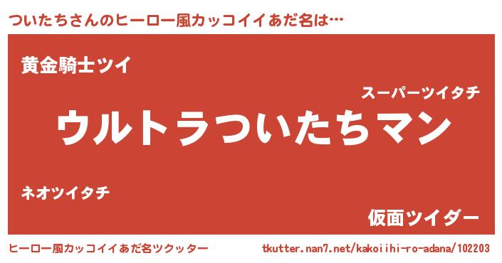 | 男性向けラノベタイトル風あだ名 | 『転生したらついたちだった件』 |