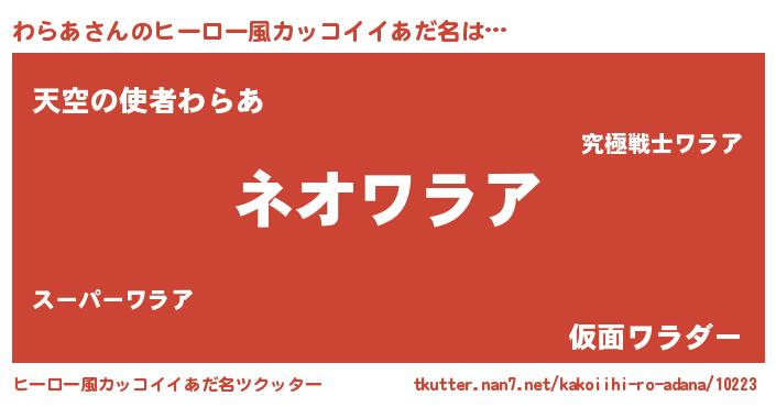 わらあさんのヒーロー風カッコイイあだ名をツクッター!