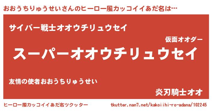 | 男性向けラノベタイトル風あだ名 | 『おおうちりゅうせいの憂鬱』 |