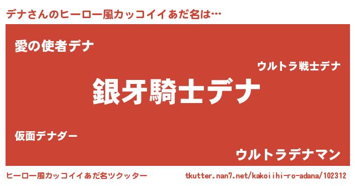 | 男性向けラノベタイトル風あだ名 | 『デナの嫁は女の子じゃないと思った?』 |