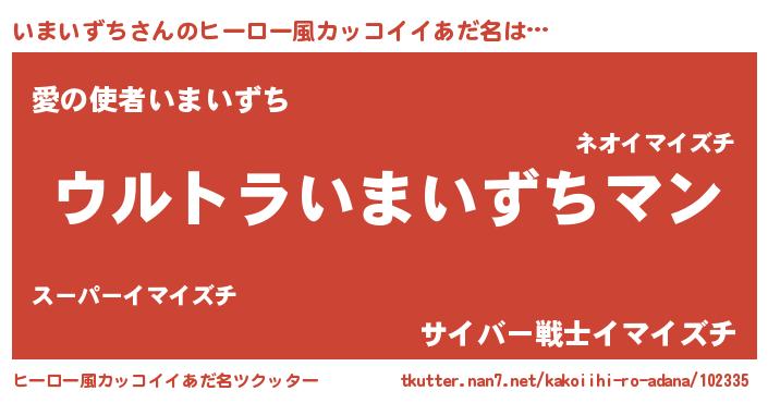 | 男性向けラノベタイトル風あだ名 | 『いまいずちに滅ぼされるだけの簡単なお仕事です』 |