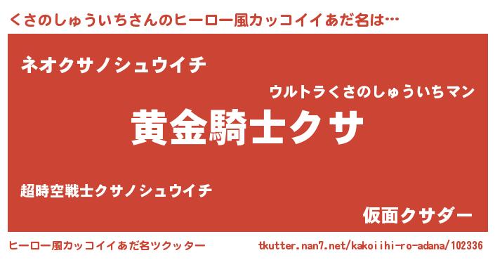 | 男性向けラノベタイトル風あだ名 | 『ダンジョンにくさのしゅういちを求めるのは間違っているだろうか』 |