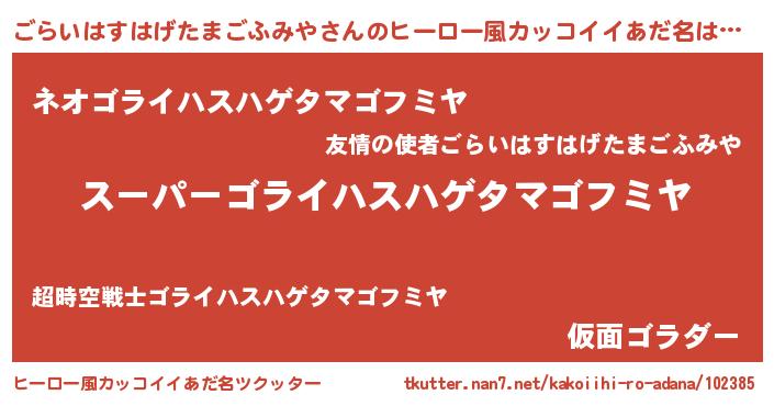 | 男性向けラノベタイトル風あだ名 | 『ごらいはすはげたまごふみやの憂鬱』 |