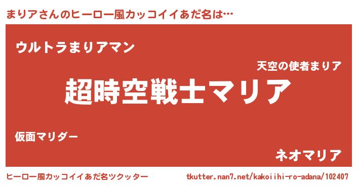 | 女子向けラノベタイトル風あだ名 | 『まりアなんてお断りですっ。』 |