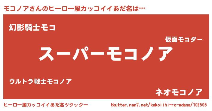 | 男性向けラノベタイトル風あだ名 | 『モコノアの憂鬱』 |
