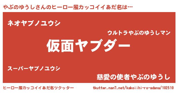 | 意味不明あだ名 | 『住所不定無職やぶのゆうし(39歳)』 |