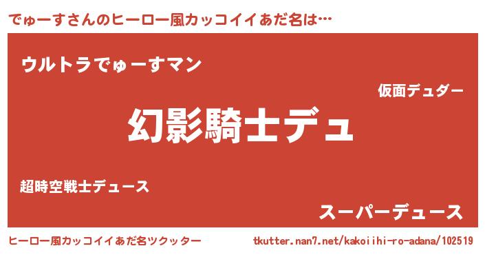 | 男性向けラノベタイトル風あだ名 | 『でゅーすに滅ぼされるだけの簡単なお仕事です』 |