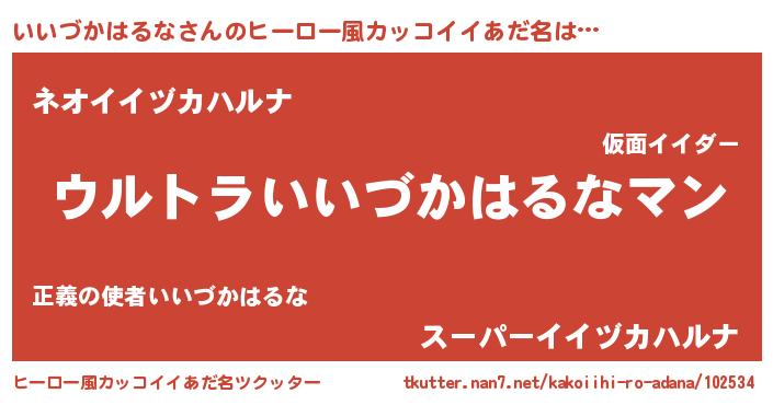 | 男性向けラノベタイトル風あだ名 | 『いいづかはるなに滅ぼされるだけの簡単なお仕事です』 |