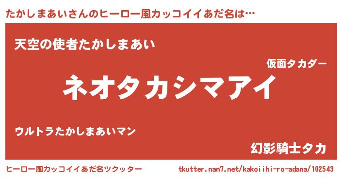 | 意味不明あだ名 | 『永久保存たかしまあい』 |