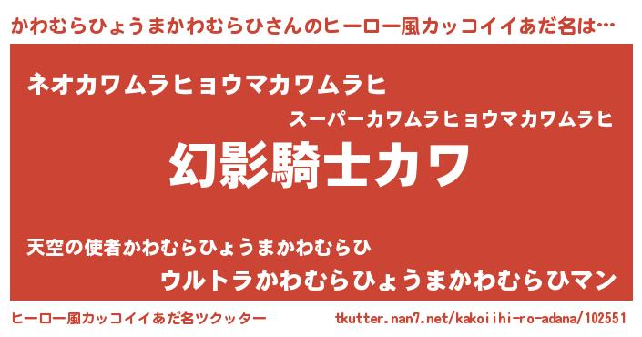 | 萌えアニメ | 主人公(かわむらひょうまかわむらひ)のあだ名『 かわ殿』 |