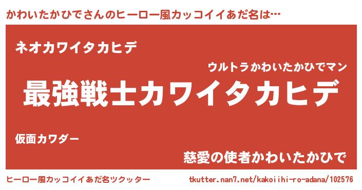 | 男性向けラノベタイトル風あだ名 | 『Re:かわいたかひでから始める異世界生活』 |