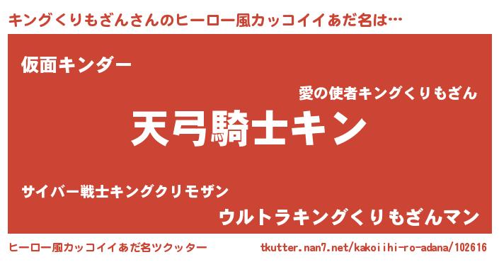 | 男性向けラノベタイトル風あだ名 | 『キングくりもざんの嫁は女の子じゃないと思った?』 |