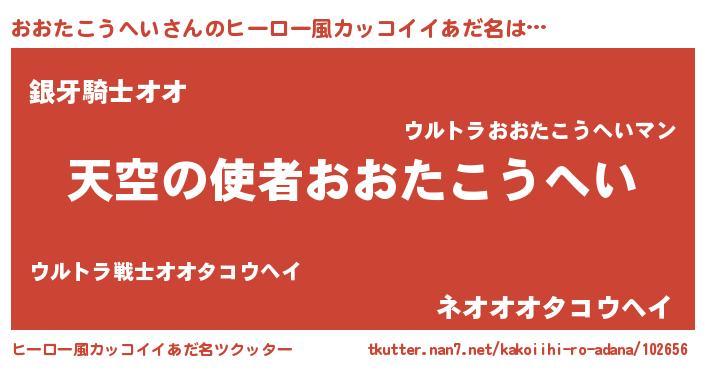 | 男性向けラノベタイトル風あだ名 | 『ノーゲーム・ノーオオタコウヘイ』 |
