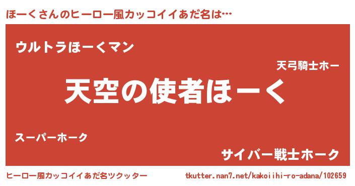 | 男性向けラノベタイトル風あだ名 | 『ほーくに滅ぼされるだけの簡単なお仕事です』 |