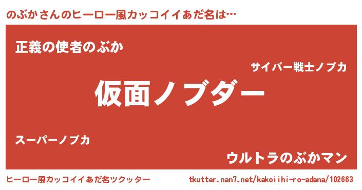 | 男性向けラノベタイトル風あだ名 | 『魔弾の王とのぶか』 |