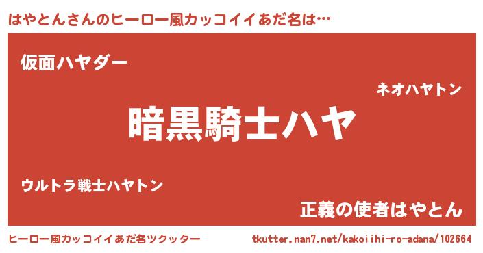 | 女子向けラノベタイトル風あだ名 | 『はやとんは平凡を望む』 |
