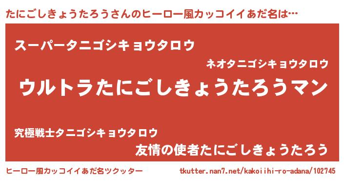 | 男性向けラノベタイトル風あだ名 | 『緋弾のタニゴシキョウタロウ』 |