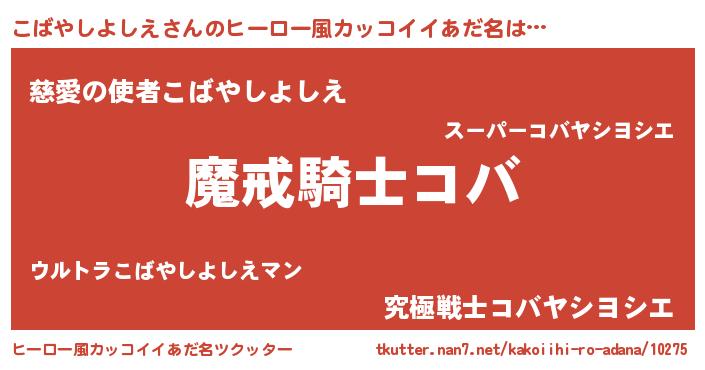 | 胡散臭い通販商品みたいなあだ名 | 『信頼と実績のサプリメント…その名も「こばやしよしえ」』 |