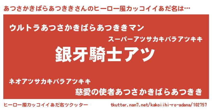 | 意味不明あだ名 | 『とにかく怪しいあつさかきばらあつきき』 |