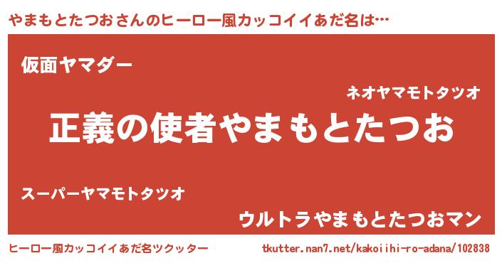 | 男性向けラノベタイトル風あだ名 | 『おまえをオタクにしてやるから、俺をやまもとたつおにしてくれ! 』 |