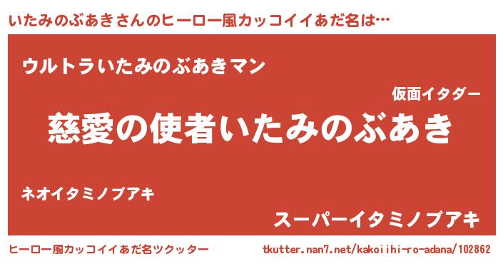 | 男性向けラノベタイトル風あだ名 | 『転生したらいたみのぶあきだった件』 |