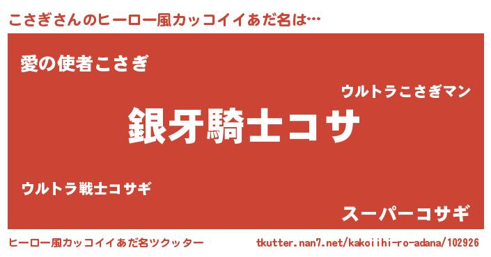 | 女子向けラノベタイトル風あだ名 | 『こさぎの卵を拾いまして』 |