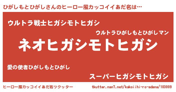 | 意味不明あだ名 | 『永久保存ひがしもとひがし』 |