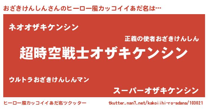 | 男性向けラノベタイトル風あだ名 | 『オザキケンシンスレイヤー』 |