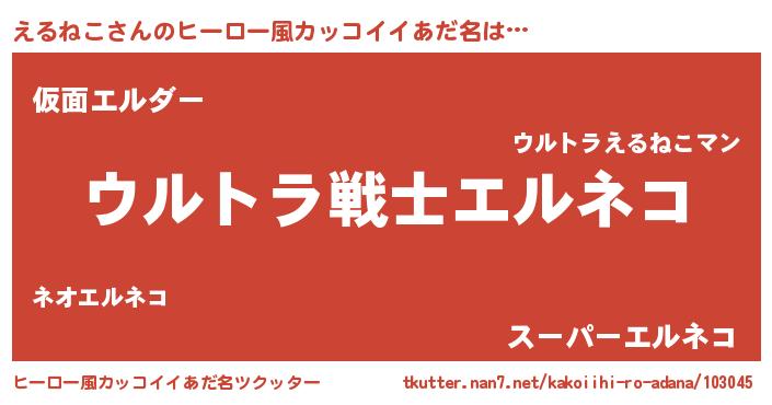 | 男性向けラノベタイトル風あだ名 | 『緋弾のエルネコ』『魔弾の王とえるねこ』 |