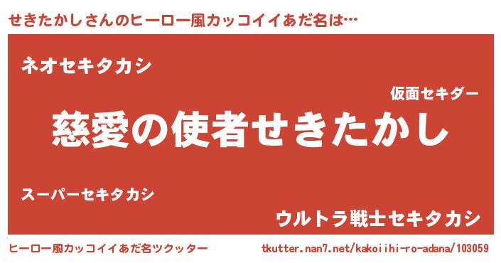 | ヘコむあだ名 | 『せきたかし(笑)』『せきにゅー』 |
