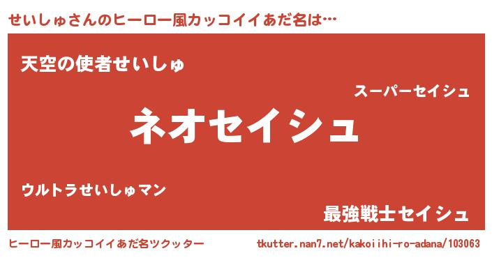 | ヘコむあだ名 | 『せいしゅ(笑)』『せいにゅー』 |