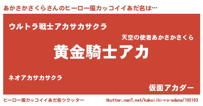 | 胡散臭い通販商品みたいなあだ名 | 『信頼と実績のサプリメント…その名も「あかさかさくら」』 |