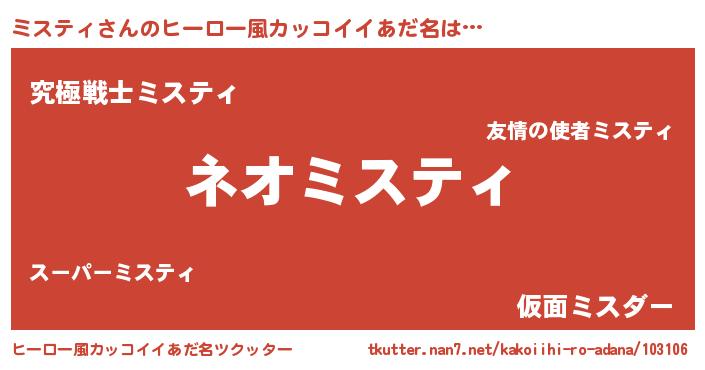| ヘコむあだ名 | 『ミスティ(爆)』『ミスっふぃ~』 |