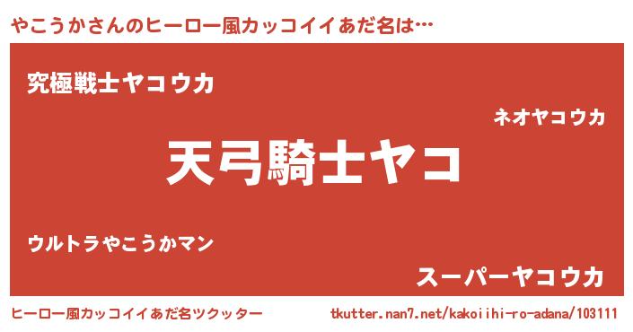 | 女子向けラノベタイトル風あだ名 | 『やこうか様がみてる』『闇のやこうか』 |