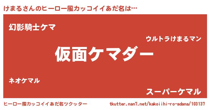 けまるさんのヒーロー風カッコイイあだ名をツクッター!