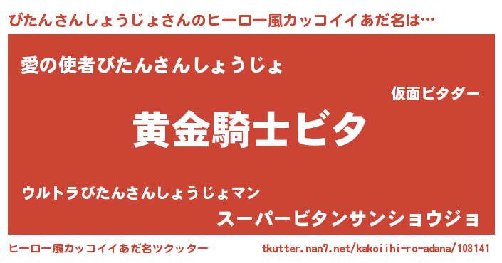 | 男性向けラノベタイトル風あだ名 | 『ダンジョンにびたんさんしょうじょを求めるのは間違っているだろうか』 |