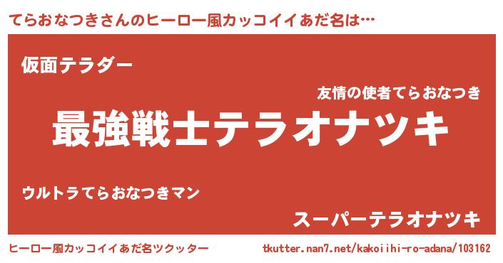 | 男性向けラノベタイトル風あだ名 | 『Re:てらおなつきから始める異世界生活』 |