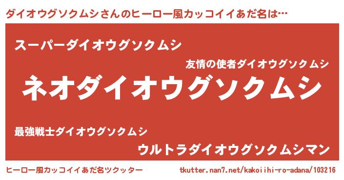 | ヘコむあだ名 | 『ダイオウグソクムシ(爆)』『ダイもー』 |