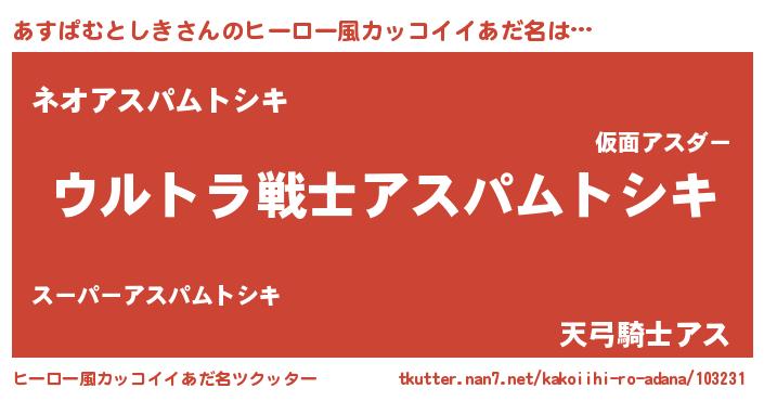 | 意味不明あだ名 | 『自称あすぱむとしき』 |
