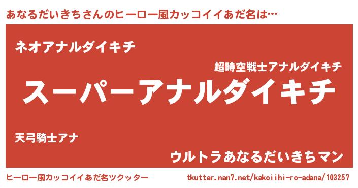 | 男性向けラノベタイトル風あだ名 | 『アナルダイキチアートオンライン』 |