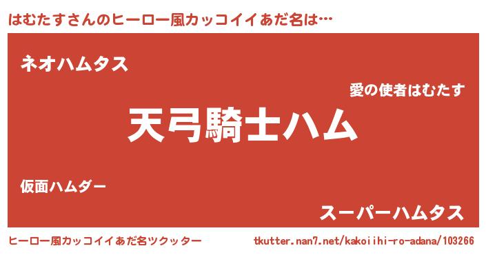 | 男性向けラノベタイトル風あだ名 | 『はむたすの嫁は女の子じゃないと思った?』 |