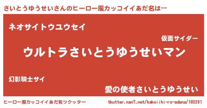 | ファンタジー風あだ名 | 『エターナルサイトウユウセイー』 |