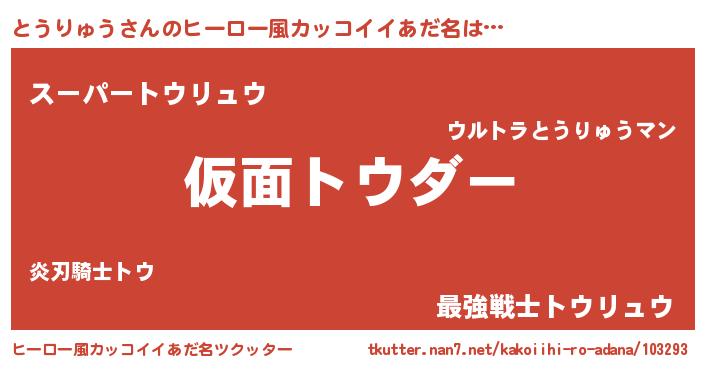 意味不明あだ名 | 『住所不定無職とうりゅう(13歳)』 |