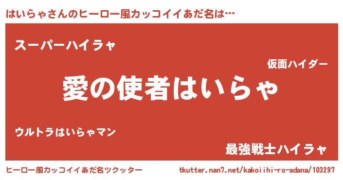 | 意味不明あだ名 | 『なめこ科はいらゃ属』『自称はいらゃ』 |
