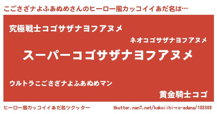 | 男性向けラノベタイトル風あだ名 | 『こごさざナよふあぬめの憂鬱』 |