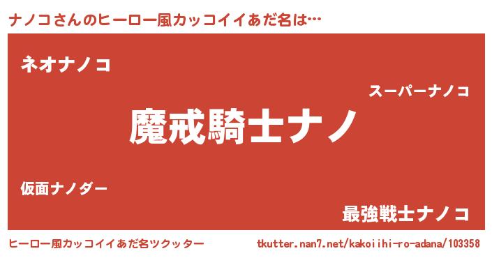 | ポケモン風あだ名 | 『ナノゴンZ』『ヒナノコ』『ゼニナノ』 |