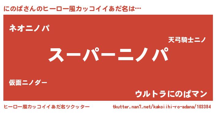 | 男性向けラノベタイトル風あだ名 | 『うちのにのぱが世界を掌握している!』 |