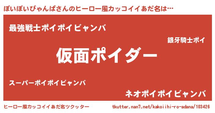 | 男性向けラノベタイトル風あだ名 | 『この素晴らしい世界にぽいぽいびゃんばを!』 |