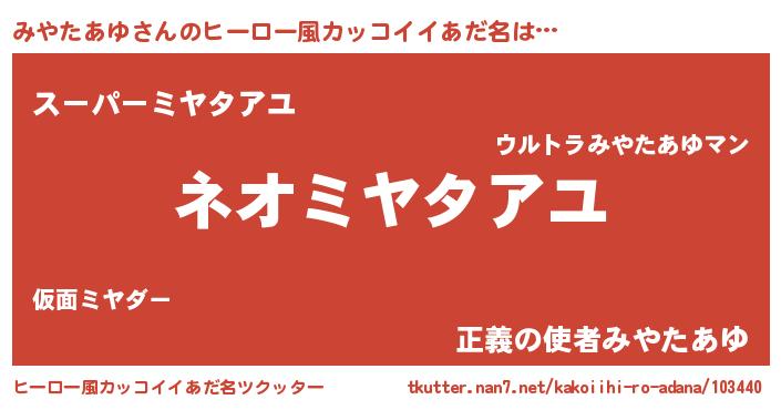 | ヘコむあだ名 | 『みやたあゆ(小並感)』『みやにー』 |